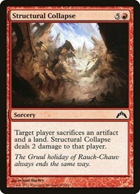 Target player sacrifices an artifact and a land. Structural Collapse deals 2 damage to that player.