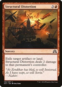 Exile target artifact or land. Structural Distortion deals 2 damage to that permanent's controller.