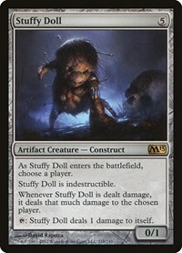 Whenever Stuffy Doll is dealt damage, it deals that much damage to the chosen player.