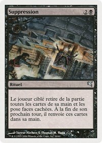 Target player removes all cards in his or her hand from the game face down. At the end of that player's next turn, that player returns those cards to his or her hand.