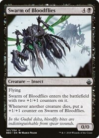 Whenever another creature dies, put a +1/+1 counter on Swarm of Bloodflies.