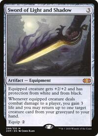 Equipped creature gets +2/+2 and has protection from white and from black.