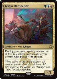 During your turn, spells you cast cost 1 less to cast for each creature you control with power 4 or greater.