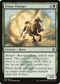 When Temur Charger is turned face up, target creature gains trample until end of turn.