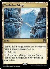 Tendo Ice Bridge enters the battlefield with a charge counter on it.