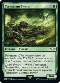 Death Frenzy — When Termagant Swarm dies, create a number of 1/1 green Tyranid creature tokens qual to Termagant Swarm's power.