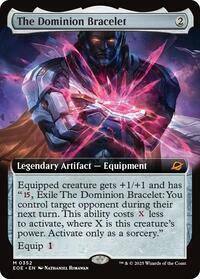 Equipped creature gets +1/+1 and has "15, Exile The Dominion Bracelet: You control target opponent during their next turn. This ability costs X less to activate, where X is this creature's power. Activate only as a sorcery."