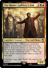 Make Them Pay — Whenever a nontoken artifact creature you control dies, you may exile it. If you do, choose an opponent with the most life among your opponents. That player faces a villainous choice — They lose 4 life, or you create a token that's a copy of that card.