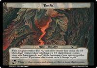 When you planeswalk to The Pit, each player creates their choice of a 3/3 white Angel creature token with flying or a 6/6 black Demon creature token with flying, trample, and "At the beginning of your upkeep, sacrifice another creature. If you can't, this creature deals 6 damage to you."