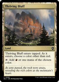 Thriving Bluff enters tapped. As it enters, choose a color other than red.