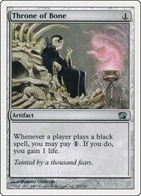 Whenever a player plays a black spell, you may pay 1. If you do, you gain 1 life.