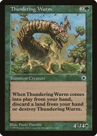 When Thundering Wurm comes into play from your hand, discard a land from your hand or destroy Thundering Wurm.