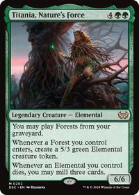 Whenever a Forest you control enters, create a 5/3 green Elemental creature token.