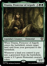 When Titania, Protector of Argoth enters the battlefield, return target land card from your graveyard to the battlefield.