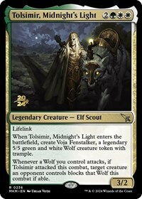 When Tolsimir, Midnight's Light enters the battlefield, create Voja Fenstalker, a legendary 5/5 green and white Wolf creature token with trample.