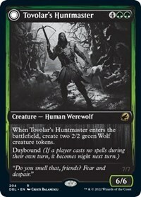 When Tovolar's Huntmaster enters the battlefield, create two 2/2 green Wolf creature tokens.