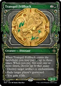 When Tranquil Frillback enters the battlefield, you may pay G up to three times. When you pay this cost one or more times, choose up to that many —