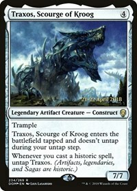 Traxos, Scourge of Kroog enters the battlefield tapped and doesn't untap during your untap step.