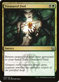 Return target card from your graveyard to your hand. Exile Treasured Find.