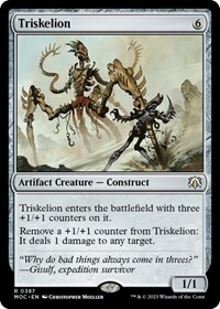 Triskelion comes into play with three +1/+1 counterson it.