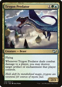 Whenever Trygon Predator deals combat damage to a player, you may destroy target artifact or enchantment that player controls.