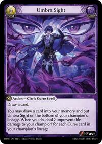 You may draw a card into your memory and put Umbra Sight on the bottom of your champion's lineage. When you do, deal 2 unpreventable damage to your champion for each Curse card in your champion's lineage.