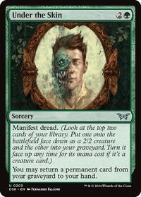 Manifest dread. (Look at the top two cards of your library. Put one onto the battlefield face down as a 2/2 creature and the other into your graveyard. Turn it face up any time for its mana cost if it's a creature card.)