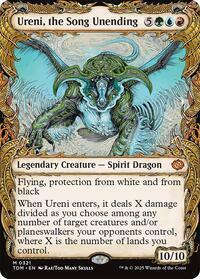 When Ureni enters, it deals X damage divided as you choose among any number of target creatures and/or planeswalkers your opponents control, where X is the number of lands you control.