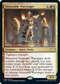 Whenever Venerable Warsinger deals combat damage to a player, you may return target creature card with mana value X or less from your graveyard to the battlefield, where X is the amount of damage Venerable Warsinger dealt to that player.