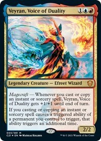 Magecraft — Whenever you cast or copy an instant or sorcery spell, Veyran, Voice of Duality gets +1/+1 until end of turn.