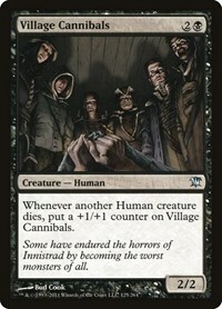 Whenever another Human creature dies, put a +1/+1 counter on Village Cannibals.