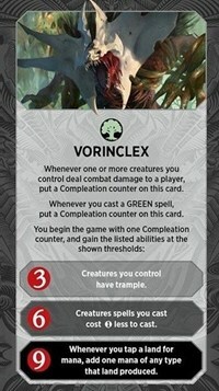 You begin the game with one Compleation counter, and gain the listed abilities at the shown thresholds: