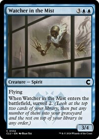 When Watcher in the Mist enters the battlefield, surveil 2. (Look at the top two cards of your library, then put any number of them into your graveyard and the rest on top of your library in any order.)