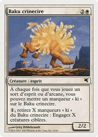 Whenever you play a Spirit or Arcane spell, you may put a ki counter on Waxmane Baku.