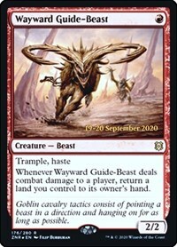 Whenever Wayward Guide-Beast deals combat damage to a player, return a land you control to its owner's hand.