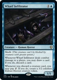 Whenever Wharf Infiltrator deals combat damage to a player, you may draw a card. If you do, discard a card.