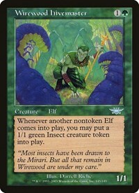 Whenever another nontoken Elf comes into play, you may put a 1/1 green Insect creature token into play.