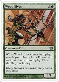 When Wood Elves comes into play, search your library for a Forest card and put that card into play. Then shuffle your library.