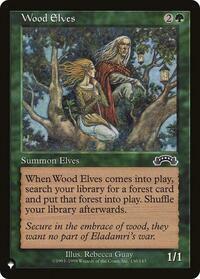 When Wood Elves comes into play, search your library for a forest card and put that forest into play. Shuffle your library afterwards.