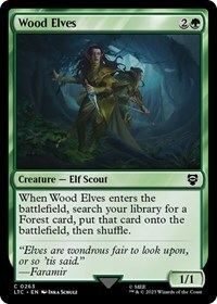 When Wood Elves enters the battlefield, search your library for a Forest card and put that card onto the battlefield, then shuffle.
