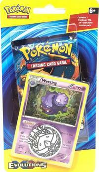 Each Blister Comes With 1 Xy—evolutions Booster Pack, A Coin, And A Promotional Card Of Weezing.