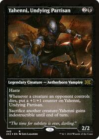 Whenever a creature an opponent controls dies, put a +1/+1 counter on Yahenni, Undying Partisan.