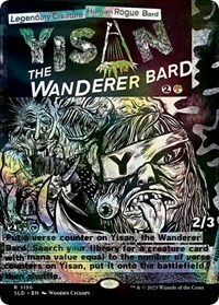 2G, T, Put a verse counter on Yisan, the Wanderer Bard: Search your library for a creature card with mana value equal to the number of verse counters on Yisan, put it onto the battlefield, then shuffle.