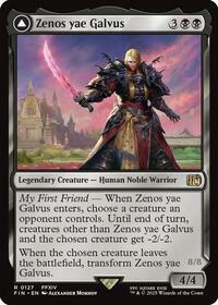 My First Friend — When Zenos yae Galvus enters, choose a creature an opponent controls. Until end of turn, creatures other than Zenos yae Galvus and the chosen creature get -2/-2.