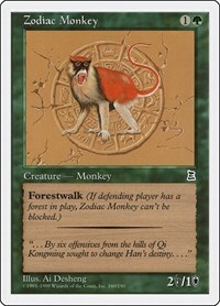 Forestwalk (If defending player has a forest in play, Zodaic Monkey can’t be blocked.)