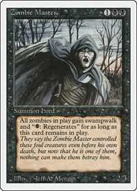 All zombies in play gain swampwalk and "B: Regenerates" for as long as this card remains in play.