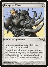 Equipped creature gets +1/+1 for each card in your hand.