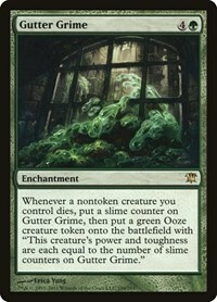 Whenever a nontoken creature you control dies, put a slime counter on Gutter Grime, then put a green Ooze token onto the battlefield with "This creature's power and toughness are each equal to the number of slime counters on Gutter Grime."