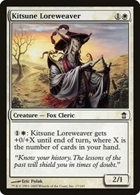 1W: Kitsune Loreweaver gets +0/+X until end of turn, where X is the number of cards in your hand.