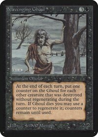 At the end of each turn, put one counter on the Ghoul for each other creature that was destroyed without regenerating during the turn. If Ghoul dies, you may use a counter to regenerate it; counters remain until used.